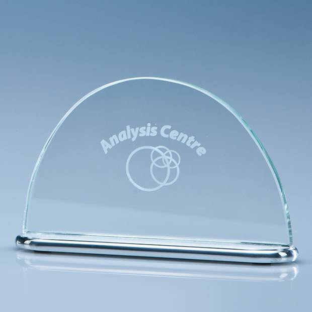 14cm x 8.5cm x 7mm Clear Glass Half Moon on an Aluminium Base