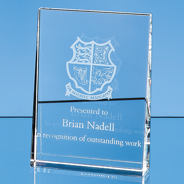 The 15cm Vertical Wedge Award is simple in design yet very stylish and is produced from the finest quality optical crystal. There is a generous area that can be engraved with a crest, logo or message to create an award that is sure to be treasured by the recipient. The award is supplied in a foam lined presentation box.
