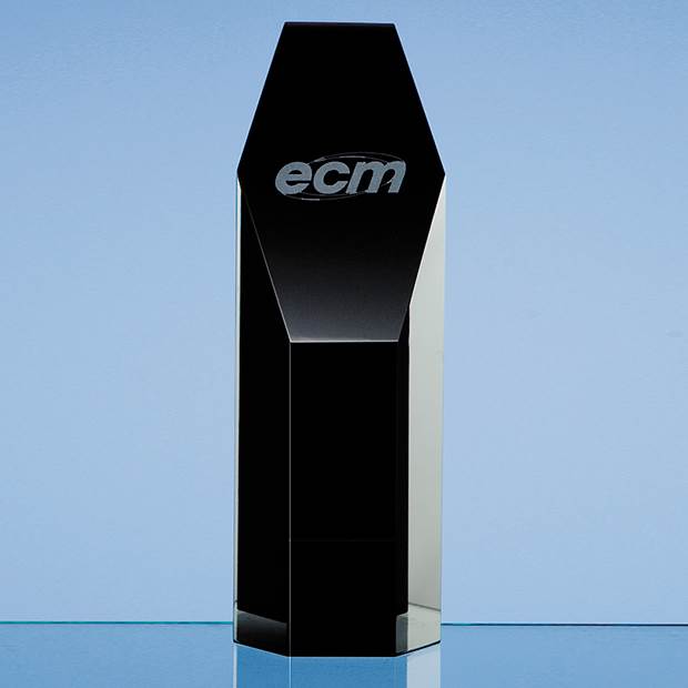 The Onyx Black Hexagons are hand crafted out of optical crystal and are available in 3 sizes. The sloped face on the top of the hexagon can be personalised with any crest, logo or wording to create an award that is sure to take pride of place when put on display at home or at work. They are ideal recognition, achievement or incentive gifts and are supplied in a black foam lined presentation box.