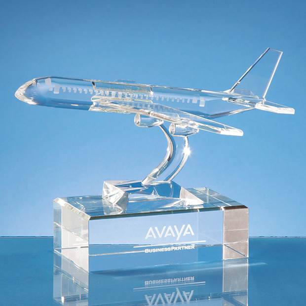 The 21.5cm Airplane Award is made out of perfectly clear optical crystal and makes an ideal award or gift for the aviation industry. The award can be engraved on the side of the base to create a gift that is sure to take pride of place when put on display at home or at work.and will be displayed with pride in the home or office. The award is supplied in a foam lined gift box.
