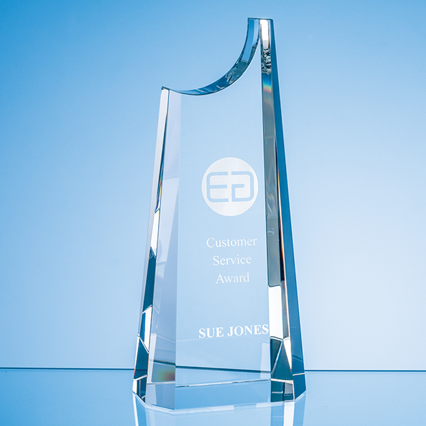 The impressive 24cm Optical Crystal Summit Award commands attention with its grandeur and grace. Meticulously hand crafted from the finest quality optical crystal the award captures the essence of success and embodies accomplishment. There is a generous engraving area that can be personalised with any crest, logo or wording to create an award that is sure to be treasured by the recipient. The award is supplied in a foam lined gift box.