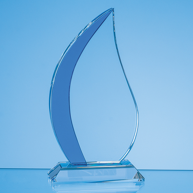 The 18cm Optical Crystal Clear & Cobalt Blue Flame Award captures the essence of success and embodies accomplishment. There is a generous engraving area that can be personalised with any crest, logo or wording to create an award that is sure to be treasured by the recipient. The award is supplied in a foam lined gift box.