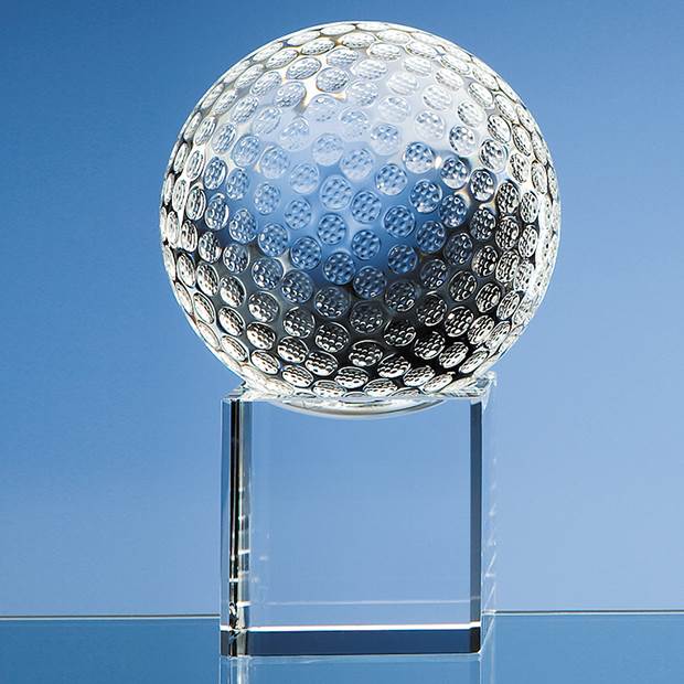 The Golf Ball on clear bases are very effective and stylish, the ball spins freely on the base having been hand crafted out of perfectly clear optical crystal. They are available in 4 sizes and are ideal awards or prizes that can be personalised on the base with any club crest, logo or wording to create a gift that is sure to take pride of place when put on display. They are supplied in a black foam lined presentation box.