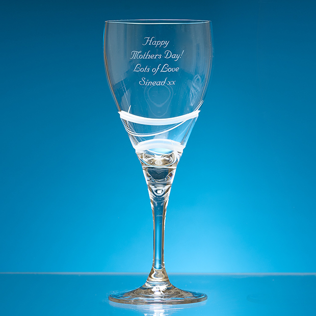 The lead crystal Verona goblet is elegant in design and modern in appearance with a contemporary wave pattern cut around the side of the goblet. Despite the cutting there is still plenty of room to personalise the goblet with any crest, logo or wording to create a gift that is sure to take pride of place when put on display at home or at work.