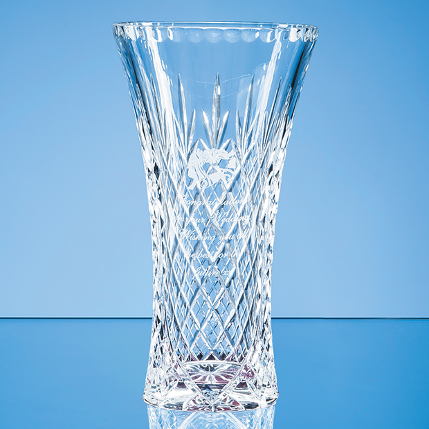 This elegant lead crystal flared vase with a classic diamond cut pattern is a superb choice as a gift or award for many occasions. There is a generous panel allowed for engraving so it can be personalised to suit the occasion whether a business recognition award a retirement gift or to mark a special family occasion like a birthday or anniversary.