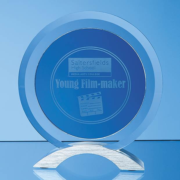The clear and smoked glass circles are mounted on an aluminium base. They are available in 15cm, 17cm and 18.5cm. There is a large engraving area that can be personalised with nay crest, logo or wording. They are ideal to present 1st, 2nd and 3rd place and look great on display.