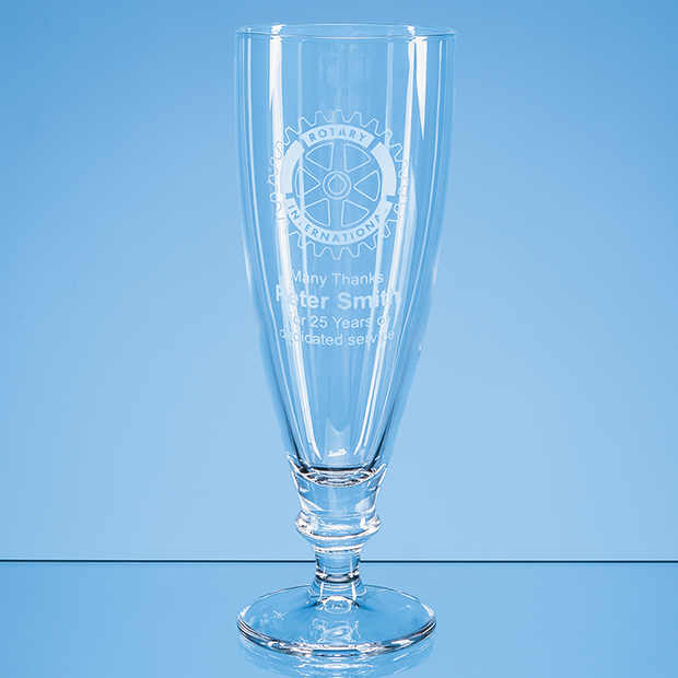 This tulip shaped beer glass is designed to maintain carbonation in the drink whilst providing a strong aromatic front. It s a great glass for Belgian ales and fruit beers and features a very large engraving area for your logo crest or wording.